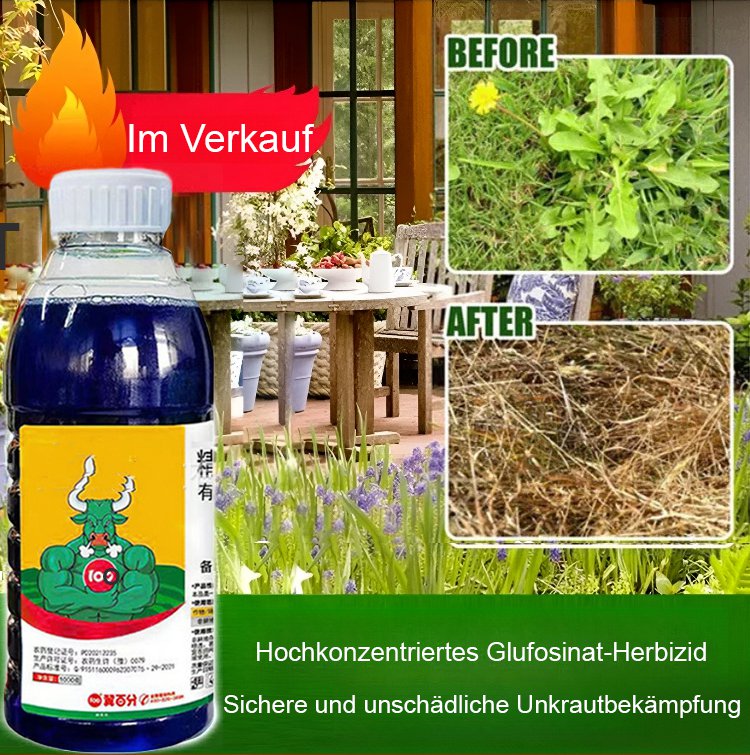 Gründliches Unkrautentfernen, schadet dem Boden nicht, eine Flasche reicht für 3-5 Morgen Land.